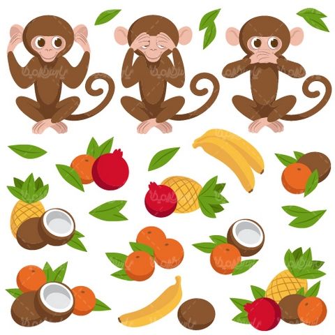 میوه , موز , Monkey Vector , وکتور میمون , میمون , آناناس , نارگیل , حیوان ,