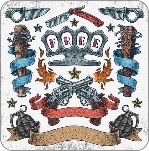 در این فایل Illustrator هفت تیر و اسلحه نیز وجود دارد.