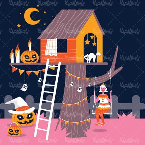 وکتور هالوین , ماه , کدو , برنامه کودک , کارتون , کلبه چوبی ,
