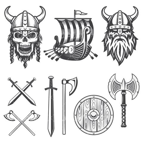 وکتور وایکینگ , تتو , کلاه خود , طرح خالکوبی , تبر , کشتی , سپر , طرح تتو , شمشیر ,
