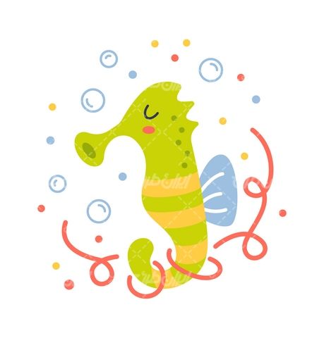 وکتور و برداری اسب دریایی به همراه المان و عناصر طراحی