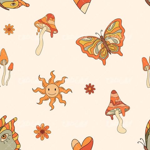 وکتور پترن , خورشید , قارچ , پروانه , پس زمینه , والپیپر , گل ,