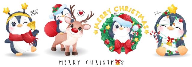 وکتور پنگوئن , وکتور المان کریسمس , گوزن , المان کریسمس , کریسمس , Christmas element vector ,