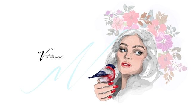 Vector woman face , سالن زیبایی , پرنده , وکتور چهره زن , سالن آرایش ,