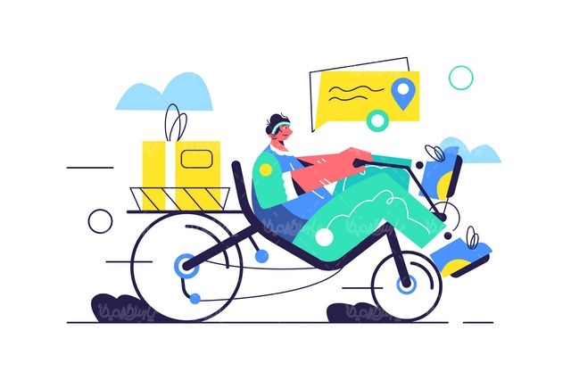 در وکتور برداری از شخصیت کارتونی و دوچرخه استفاده شده است.