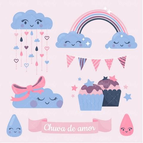 ابر , برنامه کودک , وکتور ابر , کارتون , Vector Cloud , قطره آب , روبان , شرشره , رنگین کمان ,
