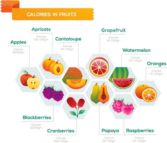 در این فایل Illustrator میزان کالری میوه و میوه نیز وجود دارد.