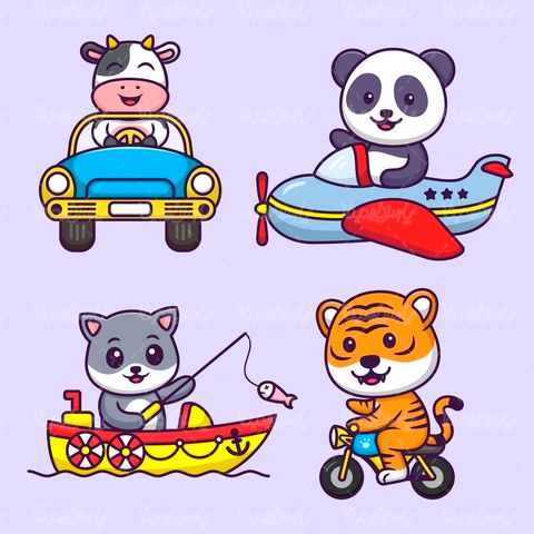 برنامه کودک , وکتور گاو , سگ , کارتون , خرس , خرس , ببر ,