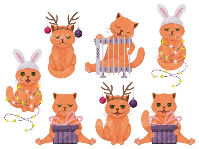 کارتون , کارتون , چنگ , هدیه , Cat vector , المان کریسمس , برنامه کودک , شاخ گوزن , وکتور گربه ,