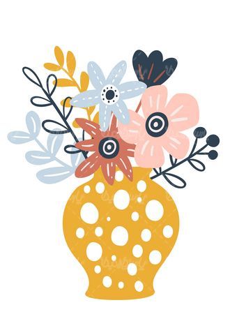 نقاشی کودکانه , گلدان , Vector vase , وکتور گلدان , گل , گل و بوته ,