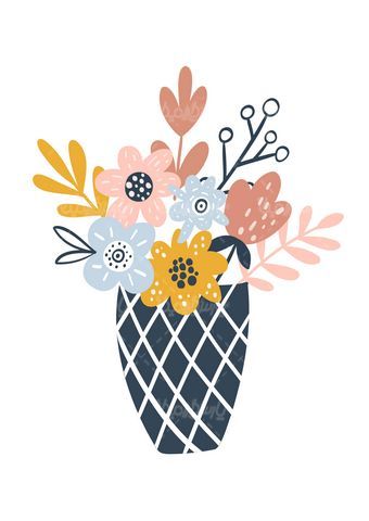 نقاشی کودکانه , گلدان , وکتور گلدان , Vector vase , گل , گل و بوته ,