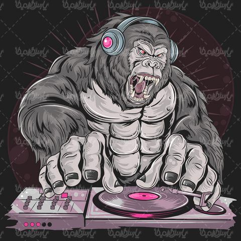 دی جی , کارتون , Gorilla vector , برنامه کودک , هدفون , میمون , وکتور گوریل ,