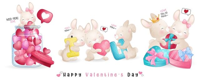 طرح ولنتاین , قلب , کادو , ولنتاین , کارتون , روز عشق , وکتور ولنتاین , خرگوش , برنامه کودک , هدیه , عشق ,
