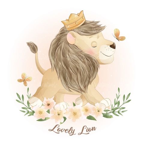 Vector forest lion , کارتون , Baby app vector , وکتور برنامه کودک , فریم گل , برنامه کودک , شیر جنگل ,